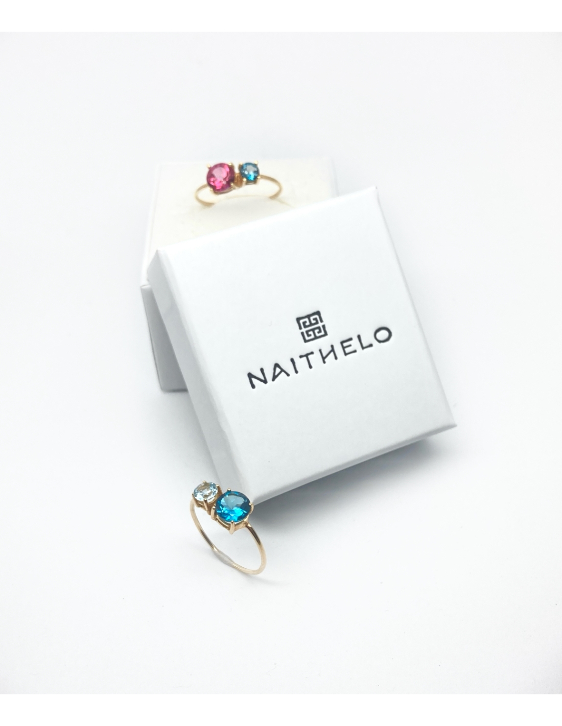 Anillo con London blue y Topacio Rosa en Oro Amarillo de 18 KT