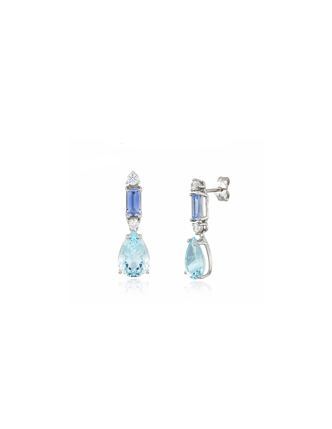 Pendientes de oro blanco de 18 quilates con diamantes de 0.20 cts G-Vs y Topacios de color Azul y London Blue.